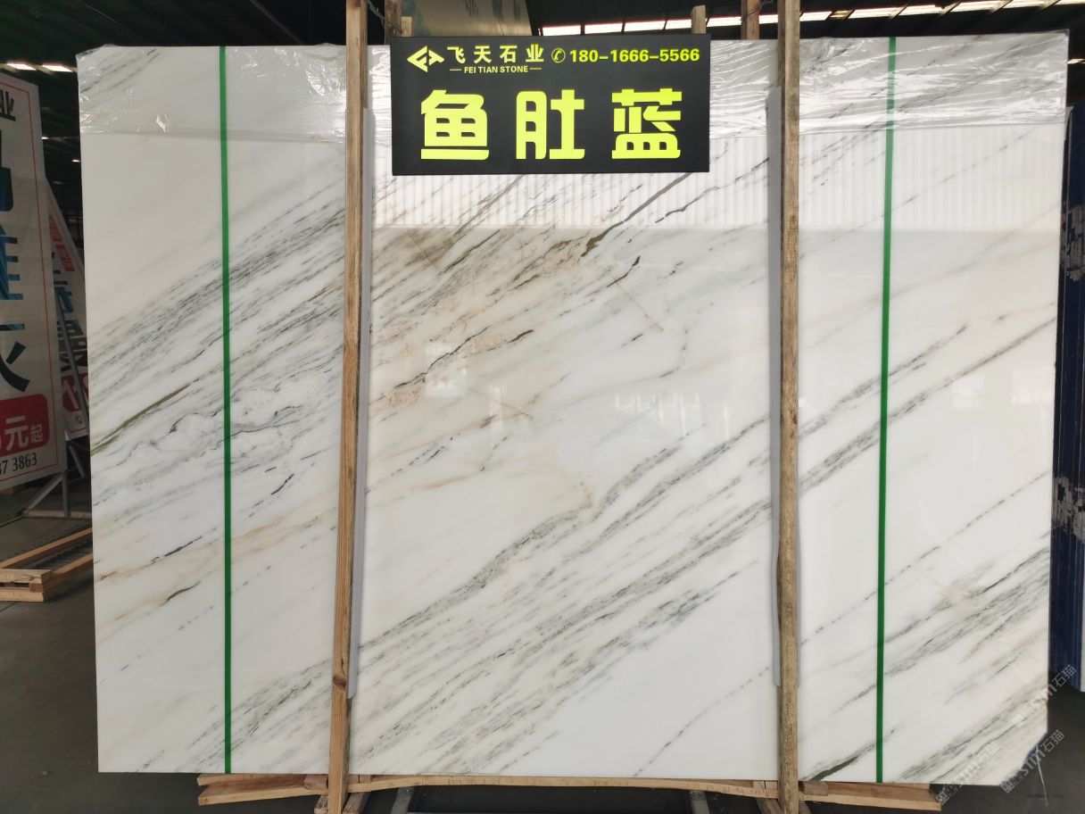 專業(yè)東方白,雕刻白!東方魚肚白,魚肚藍輕奢白石供應商,長期庫存大板50000平方以上!各種礦口板面價格紋路的都有,歡迎新老客戶前來咨詢選購!?18016665566