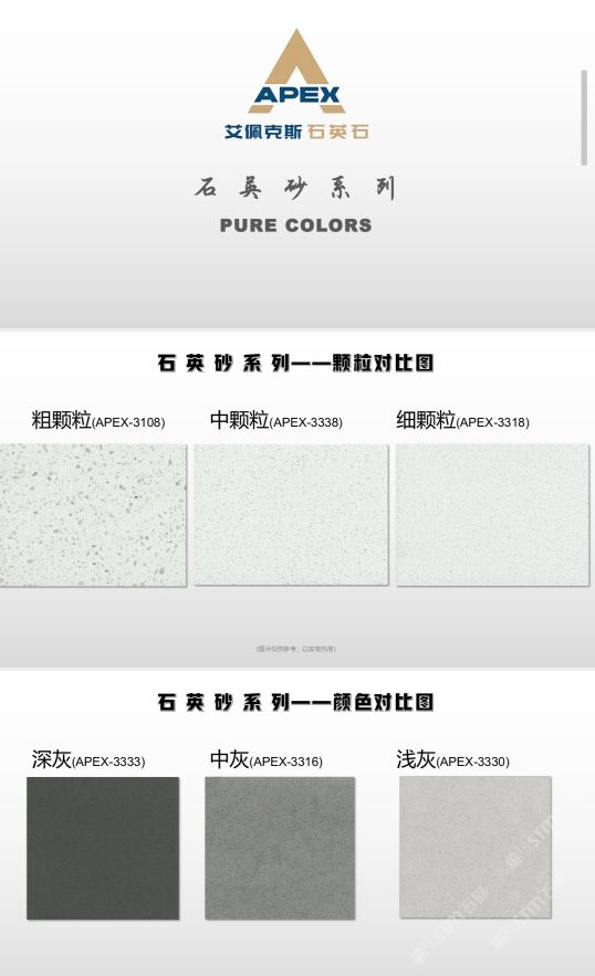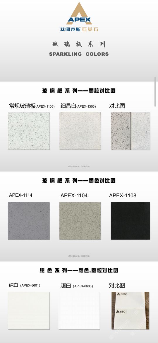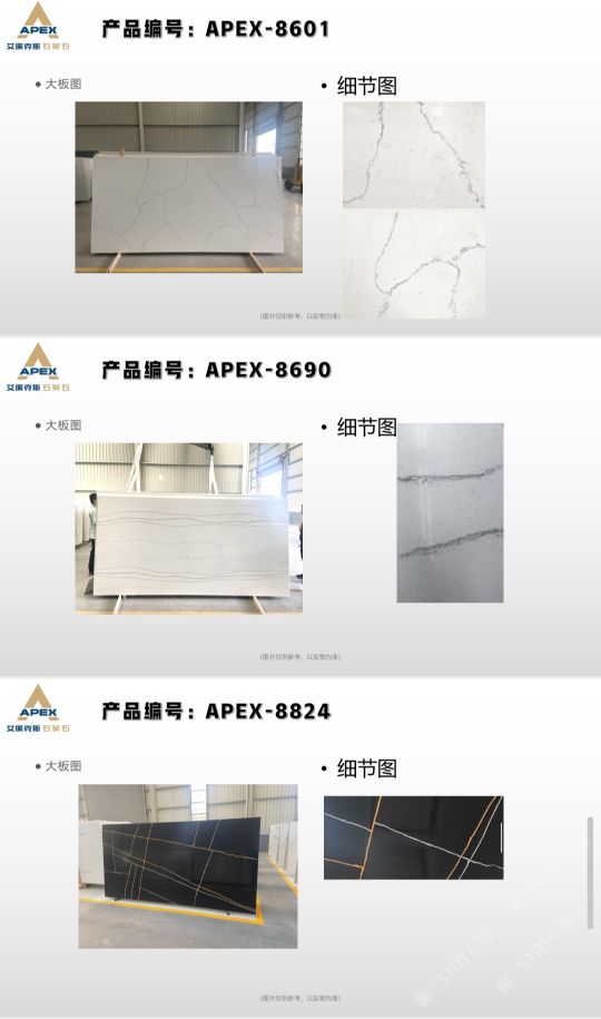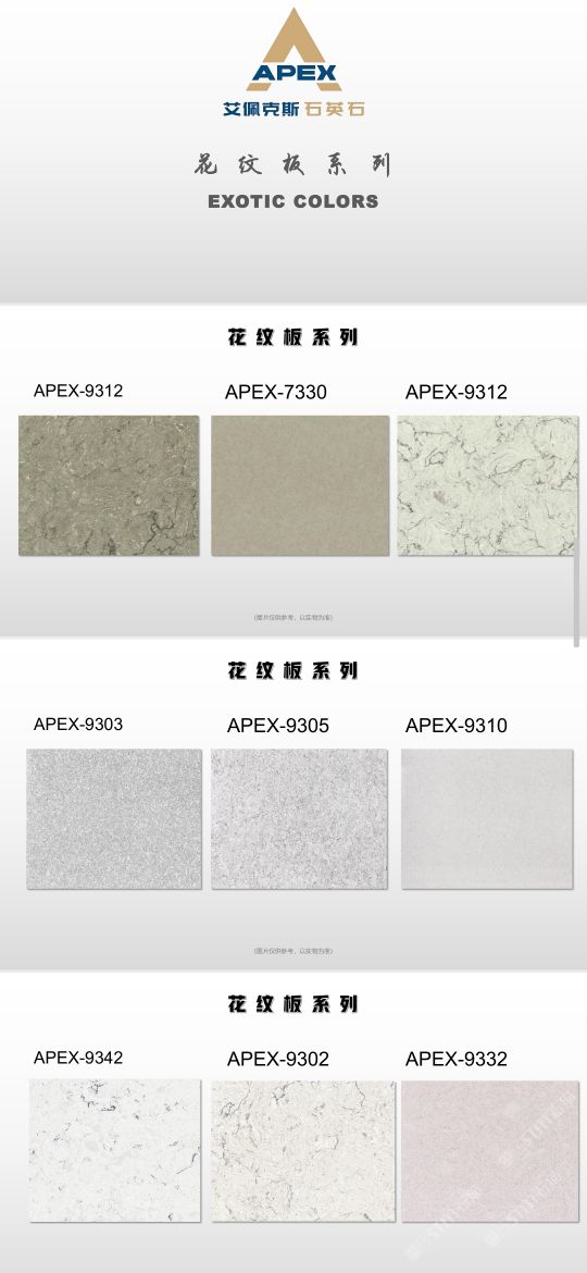 艾佩克斯秉承“精益求精”的開(kāi)發(fā)理念,在人造石生產(chǎn)工藝上大膽突破,研發(fā)出更具特色的新石代石英石,色彩自然豐富,具有天然石材的質(zhì)感和美麗的表面光澤。產(chǎn)品具有刮不花、不污染、用不舊、燃不著、無(wú)輻射等五大特點(diǎn),可以廣泛用于公共建筑酒店、餐廳、銀行、醫(yī)院、展覽館、實(shí)驗(yàn)室等和家庭裝修廚房臺(tái)面、洗臉臺(tái)、廚衛(wèi)墻面、餐桌、茶幾、窗臺(tái)、門(mén)套等領(lǐng)域,是一種無(wú)放射污染、可重復(fù)利用環(huán)保、綠色新型建筑室內(nèi)裝飾材料。是的裝飾裝修材料。