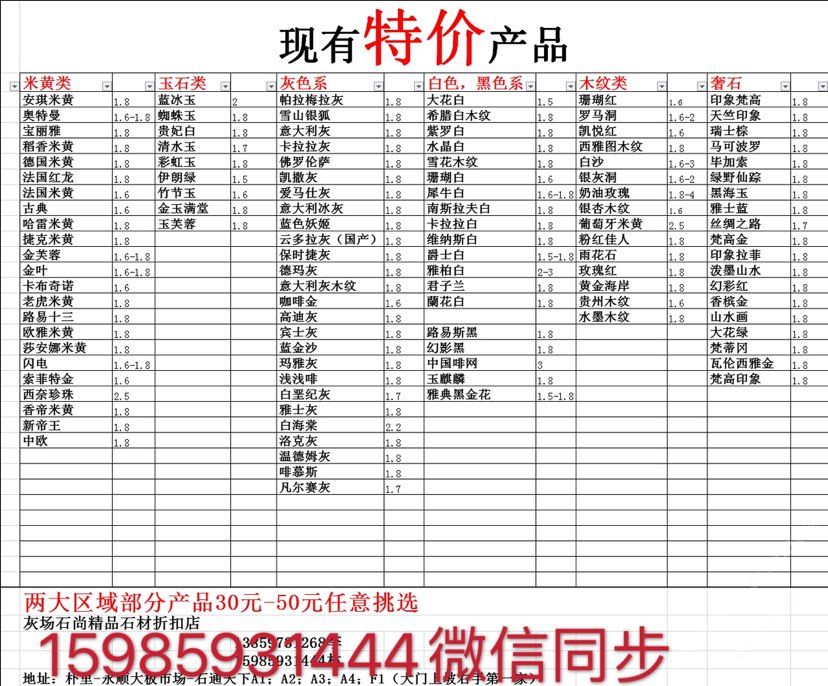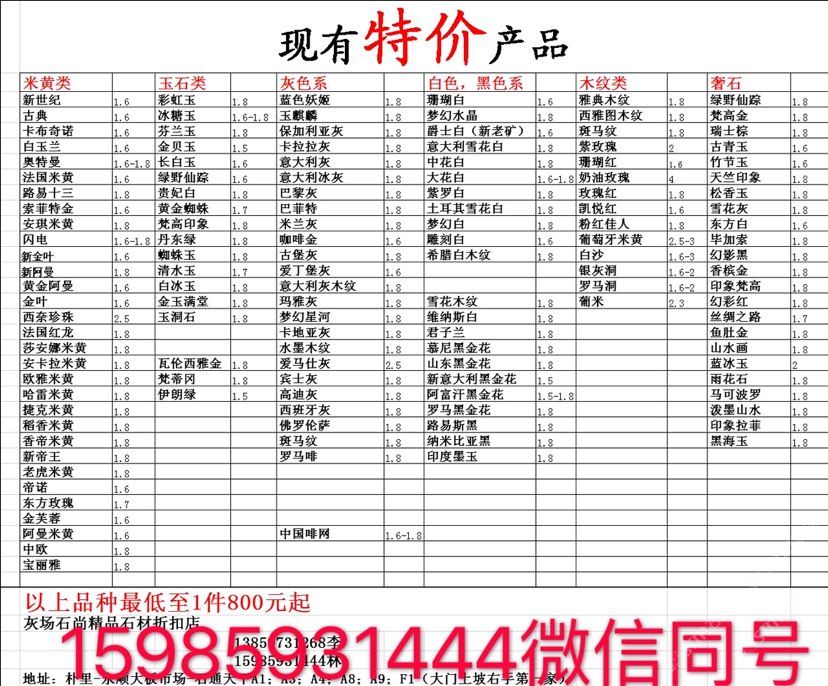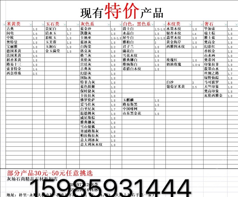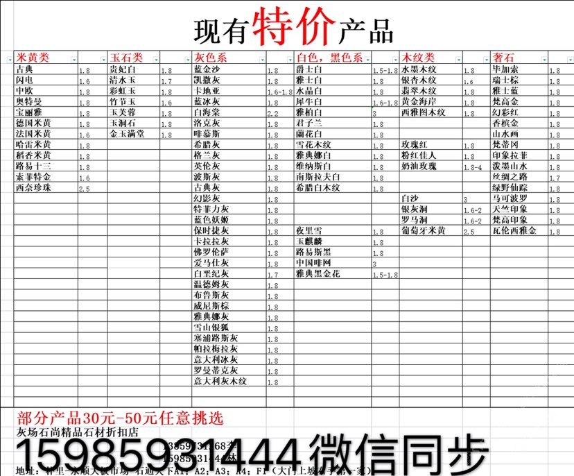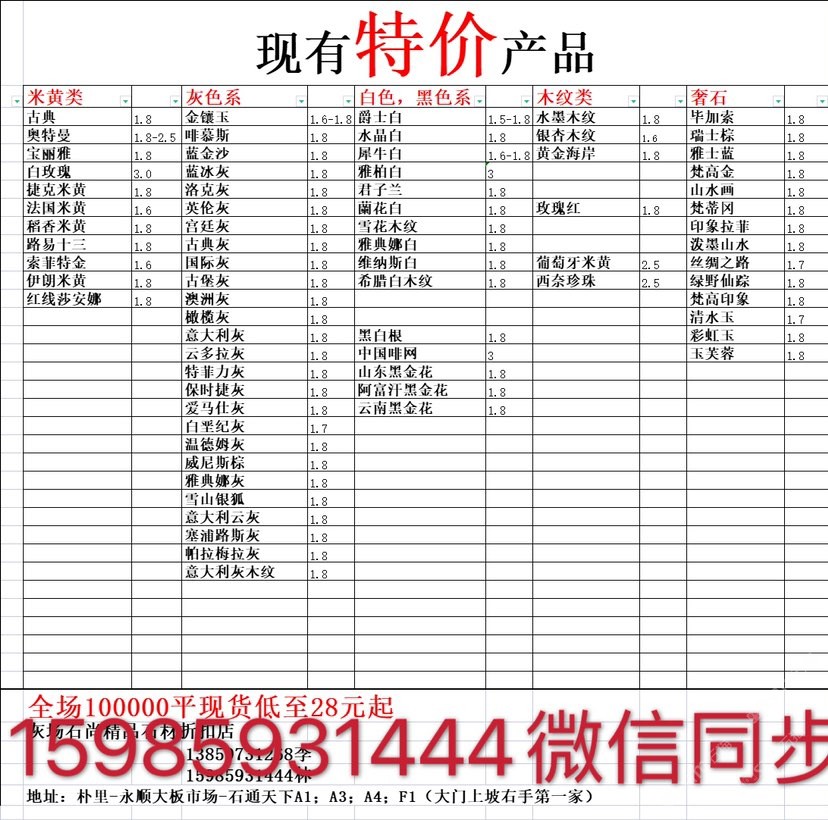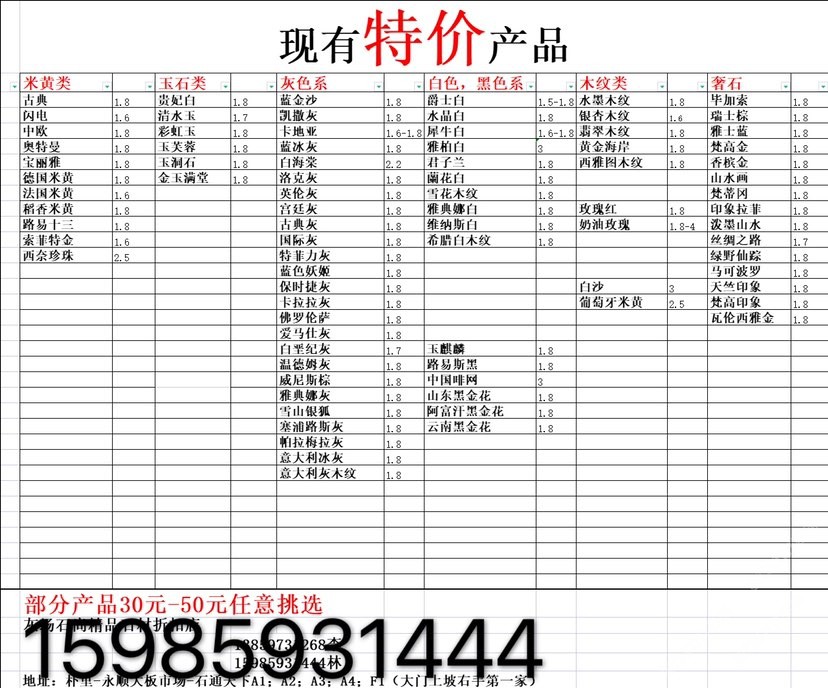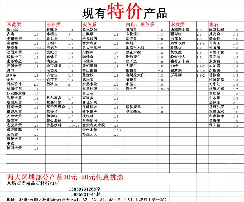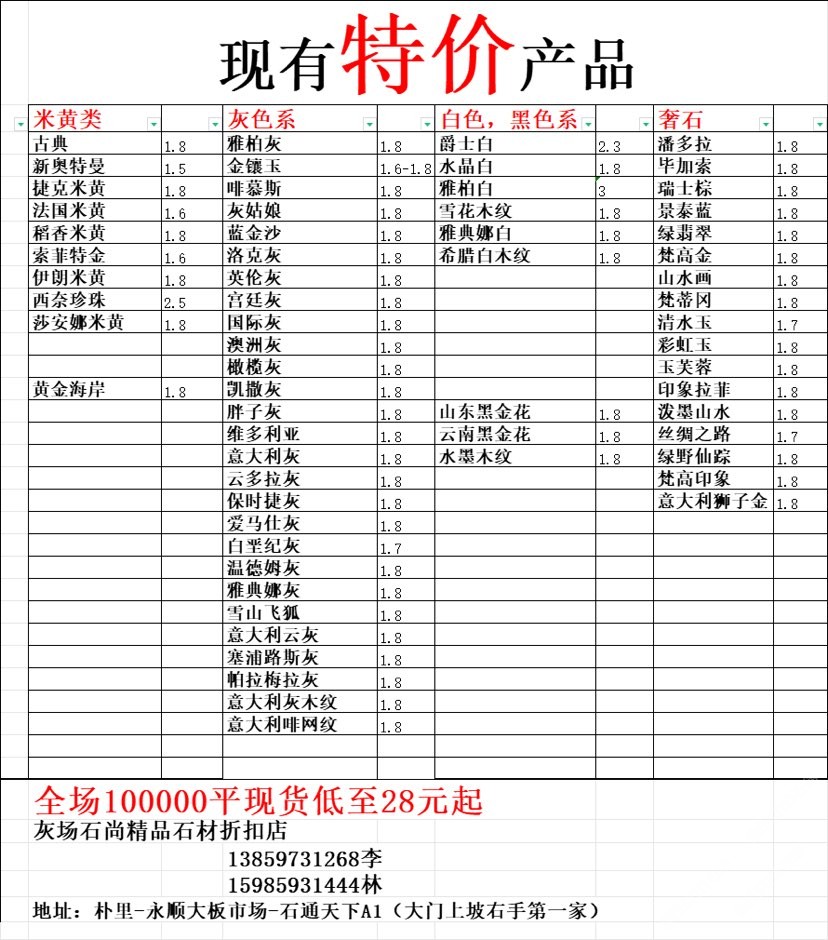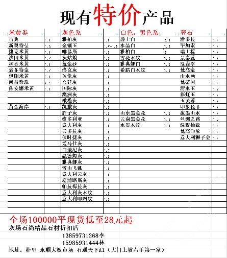 現(xiàn)有100000平大板特價(百來個品種),低至30元起