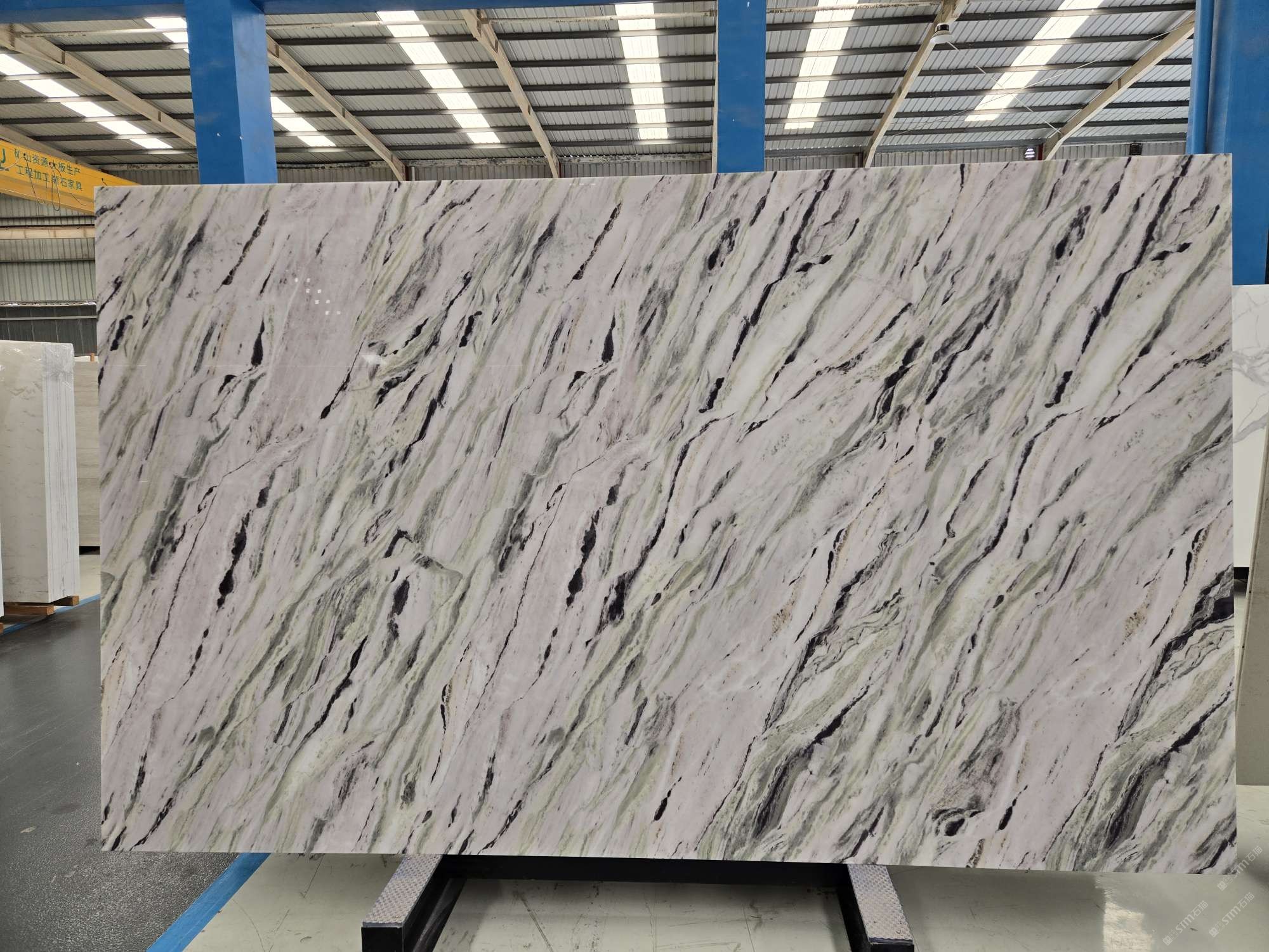 公司配有大板批發(fā)專場,同時擁有大型精加工廠房,其中各類加工器械完備,加工微晶石的工藝配套6000平方場地,并擁有建材行業(yè)各路精英成員。