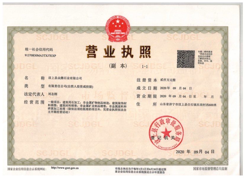 汶上縣眾騰石業(yè)有限公司,為減壓整合后的石材加工廠,有足夠得實(shí)力,以的質(zhì)量快的速度實(shí)惠的價(jià)格來滿足客戶需求聯(lián)系電話18264799333同微信
