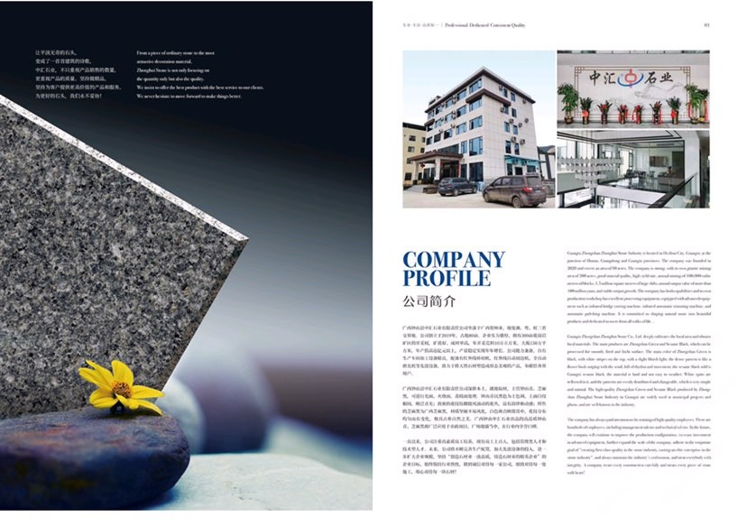 鐘山縣中匯石業(yè)有限責(zé)任公司坐落于廣西壯族自治區(qū)賀州市,地處湘、粵、桂三省交界地。公司創(chuàng)立于2019年,占地面積80余畝。企業(yè)實(shí)力雄厚,擁有300畝花崗巖礦區(qū)的開采權(quán),礦質(zhì)好、成材率高,年開采荒料10萬立方米,大板150萬平方米,年產(chǎn)值高達(dá)億元,產(chǎn)量穩(wěn)定實(shí)現(xiàn)連年增長。公司才能兼?zhèn)洌杂猩a(chǎn)車間,加工設(shè)備精良。配備有紅外線橋切機(jī)、紅外線自動切邊機(jī)、全自動磨光機(jī)、定厚機(jī)、仿形機(jī)、雕刻機(jī)等先進(jìn)設(shè)備,致力于將天然石材塑造成形態(tài)美觀的產(chǎn)品,奉獻(xiàn)給社會各界用戶。