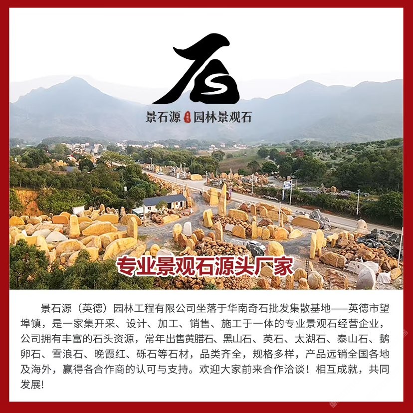 公司位于華南地區(qū)英石之鄉(xiāng)-清遠(yuǎn)英德市。本地盛產(chǎn)各種石材、擁有多年的石材銷售經(jīng)驗(yàn),自有實(shí)體石場。經(jīng)營黃蠟石、英德石、中國黑、太湖石、青花石、黑山石、鵝卵石、青花石、礫石、泰山石、雪浪石、晚霞紅等等多種石材原料??套质⒓庸な?、樹圍、景墻、地鋪、石槽石臺、水缽、石盆等多種異形加工產(chǎn)品