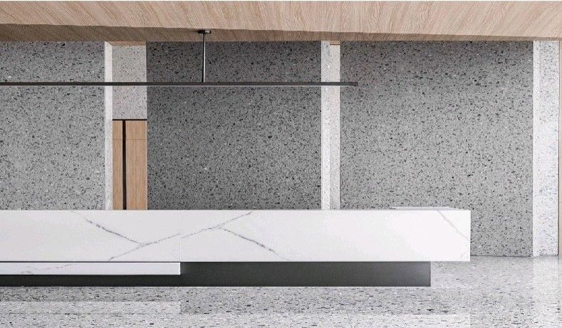 2018年,公司采用獨特的工藝技術配方,研制開發(fā)了多系列、多花色的高檔石英石板材,主要材料為石英石晶體、樹脂和微量顏料等,通過真空高壓技術聚合,再經過復雜的表面拋光工藝,使其具有天然石材的質感和表面光澤度,并且比天然石材質地堅硬、緊密,石英石具有比其它材料更優(yōu)良的耐磨、耐壓、耐高溫、抗刮傷、抗腐蝕、防滲透、抗老化、無輻射等特性;表面平整、光亮、色彩艷麗豐富,因此,被廣泛應用于家庭室內裝修,高檔櫥柜臺面,實驗室化驗室操作臺,酒店、醫(yī)院、商業(yè)綜合體、機場、寫字樓、酒店餐飲教育研究、醫(yī)療機構等場所的地面、墻面及各種工作臺面,其出眾的表面物理化性能和使用性能是其它材料所望塵莫及。