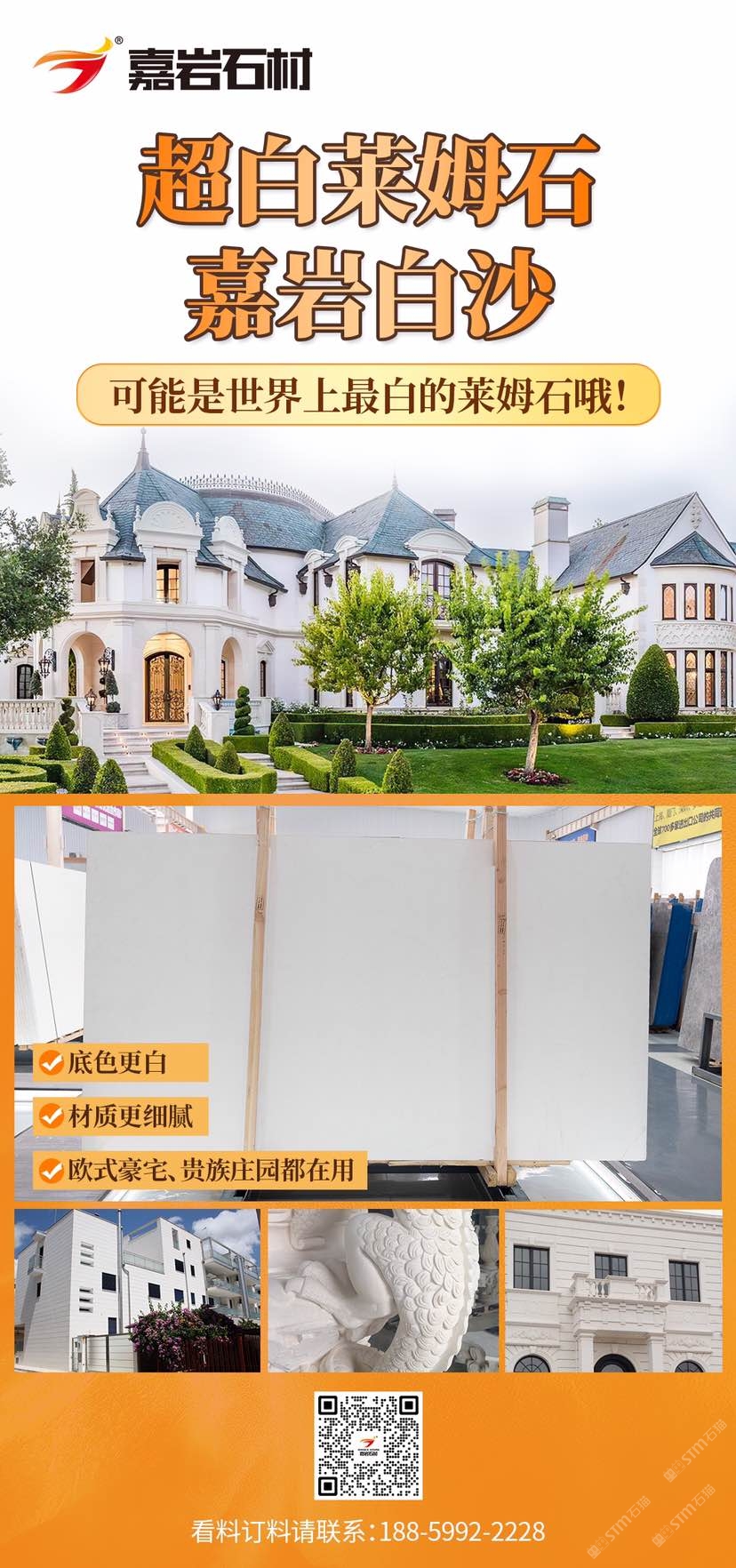 發(fā)布信息: 超白萊姆石,嘉巖白沙! 板面更純,底色更白,材質(zhì)更細(xì)膩,可能是世界上白的萊姆石哦!咨詢 :18859922228 #白色萊姆石 #貝寧白#比白沙還白的萊姆石 我公司自有5臺(tái)拉鋸大板加工廠和5臺(tái)紅外線工程精加工廠,1個(gè)大型灰石萊姆石專(zhuān)館,是一家集荒料批發(fā)、大板生產(chǎn)、大板批發(fā)、成品精加工于一體的綜合型石材供應(yīng)商,目前主營(yíng)灰色大理石(老礦古堡灰、白木紋、祥云灰/水墨云灰、云多拉灰/云朵拉灰、保加利亞灰等),萊姆石(挪威金,貝寧白)和黑石花崗巖-嘉巖芬蘭黑。 #古堡灰 #歐怒灰 #胖子灰 #巴特 #歐努灰 #摩卡石 #萊姆石 #石灰?guī)r #石灰石 #米黃 #百里香 #嘉巖挪威金 #貝寧白 #白沙