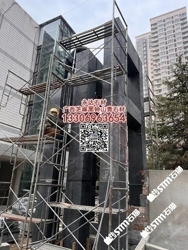 賀州鐘山青火燒面外墻干掛板廣西芝麻黑光面金點(diǎn)綠石材
