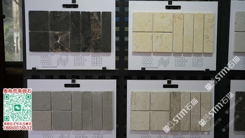 萊姆石工廠馬賽克文化石背景墻條碼磚滾磨石地鋪石滾磨