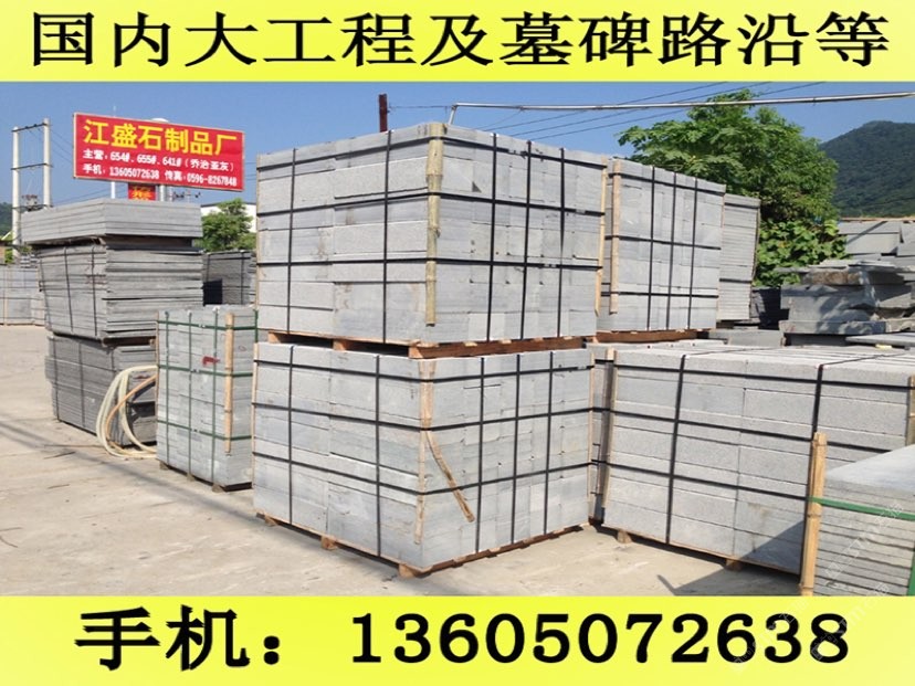 發(fā)布信息: 長(zhǎng)泰縣江盛石制品廠(王先生 手機(jī)微信:13605072638)位于福建長(zhǎng)泰的石材之鄉(xiāng)--林墩后爐工業(yè)區(qū),擁有自己大型的G654礦山,在天津與杭州有經(jīng)銷部,是一家集礦山開(kāi)采、生產(chǎn)加工及經(jīng)銷部為一體的專業(yè)石制品供應(yīng)商.距廈門市60公里,離郭坑火車站僅40公里,不論是汽運(yùn),船運(yùn)或者鐵路運(yùn)輸都十分便捷. 公司主要經(jīng)營(yíng)G654芝麻黑,G655#,G614#,G603#,銹石等磨光板、火燒板、荔枝面、龍眼面、蘑菇石、機(jī)刨石、路沿石、滾石、盲道石及異形加工。G654#石材被廣泛用于鋪設(shè)廣場(chǎng)、公園、街道、停車場(chǎng)等場(chǎng)所,具有防滑、抗酸堿、耐磨、耐壓等優(yōu)點(diǎn),可拼鋪成各種幾何圖案,美觀實(shí)用,符合現(xiàn)代建筑人與自然相結(jié)合的審美情趣,是工程建設(shè)、室內(nèi)外裝飾的建材,還可根據(jù)客戶需求加工石雕、影雕、碑石、墓石等工藝品。產(chǎn)品遠(yuǎn)銷香港、臺(tái)灣、日本、東南亞、歐洲等地。北京東方廣場(chǎng)建筑群、上海世紀(jì)大道、廈門國(guó)際會(huì)展中心地面工程等均采用了G654#等石材產(chǎn)品。 公司自創(chuàng)建以來(lái),秉承重合同守信用,質(zhì)優(yōu)價(jià)廉的經(jīng)營(yíng)理念,視客戶的需求為我的需求,客戶的滿意為我的滿意,贏得了客戶的一致好評(píng).真誠(chéng)歡迎新老客戶來(lái)電來(lái)函洽談.王先生聯(lián)系手機(jī):13605072638