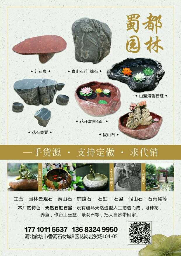 發(fā)布信息: 專營:泰山石、景觀石、天然石頭花盆水盆、鋪路石、假山石、石桌石凳等,一手貨源,支持定做,求代銷!!