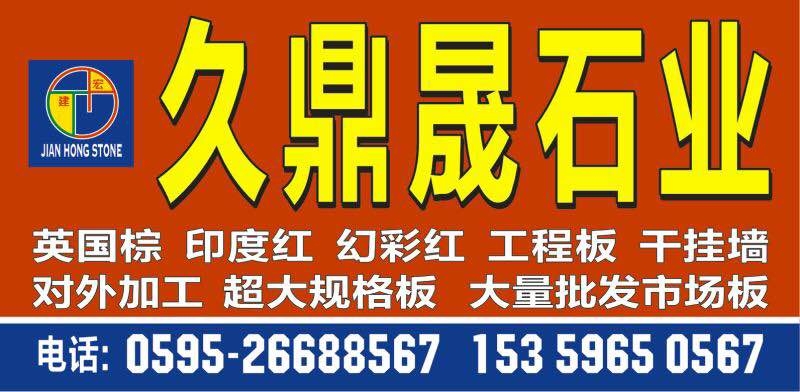發(fā)布信息: 久鼎晟石業(yè):大量批發(fā)市場(chǎng)板英國(guó)國(guó)棕,印度紅,幻彩紅及做干掛墻,承接外貿(mào)工程單,