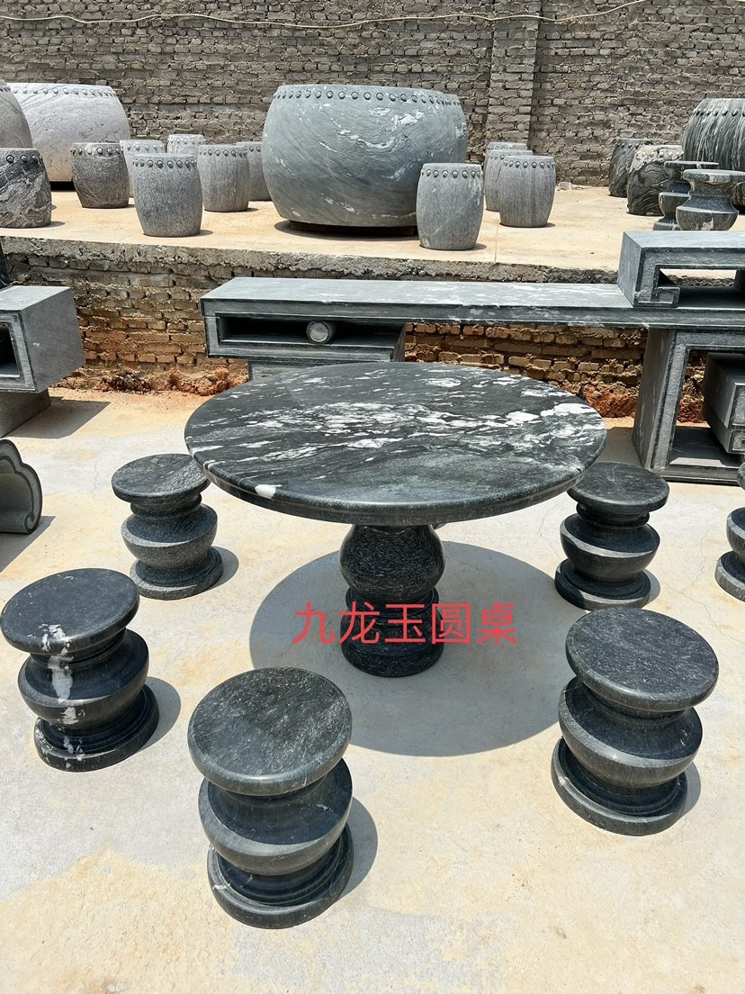 九龍玉石桌,花架。圓桌