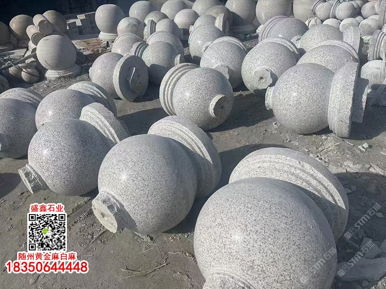 湖北白麻石材擋車石球路障石球車止石灰色石材阻車圓球