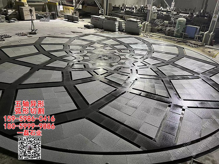 五軸弧形異形切割水池水景工程芝麻黑芝麻灰芝麻白石材