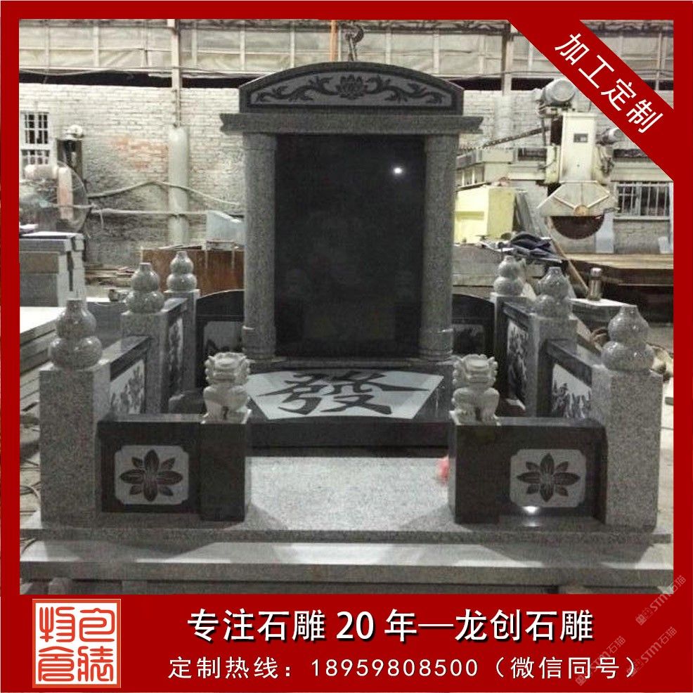 發(fā)布信息: 定制豪華墓碑 大型家族墓碑組合 請聯(lián)系電話(微信同號):18959808500 一座石雕墓碑的含義是它具有“留念”性含義,它是留念已去世的至親!在古代,關于尋常百姓來說,這種“留念”的方式僅僅是立一塊墓碑罷了?,F(xiàn)今,人們美學觀念的提高,對墓碑個性化藝術要求越來越高。因此,制作一座豪華氣派又兼具藝術的墓碑,只有專業(yè)的墓碑制作廠家才做得到!一般人是不可能獨立完成的! 福建省惠安縣龍創(chuàng)石雕工藝有限公司創(chuàng)建于2000年初。公司位于中國石雕之鄉(xiāng)——福建惠安。 我公司主要經營加工、銷售;石雕工藝品、石材制品;定制墓碑,水缽,花缽,欄桿,佛像等等。承接家族墓園工程;承接建筑幕墻工程、承接寺廟古建工程、園林古建工程設計與施工。
