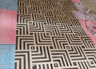 康利德水刀拼花.爵士白深啡網(wǎng)帝皇金背景墻精加工