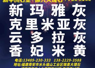 中意天璽主營(yíng)產(chǎn)品:愛(ài)瑪仕灰,北極光(宇杰礦),卡地亞灰(廣西),克里米亞灰,莫地卡灰(亂紋),瑪雅灰3,冰川木紋,云?;遥ㄙF州),馬爾代夫藍(lán),露娜灰,星絲藍(lán),菲拉格慕,土耳其洞石,米蘭灰,星電灰,淺啡網(wǎng),云多拉灰(土耳其),安格拉灰,北極光4,寶云灰企業(yè)地址:福建泉州水頭