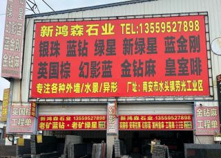 新鴻森石業(yè)主營(yíng)產(chǎn)品:綠星1,新綠星,藍(lán)珍珠,銀珠,幻影藍(lán),藍(lán)金剛1,七彩啡珠,皇室啡,英國(guó)棕(黑紅),安哥拉黑(黑水晶),金鉆麻(巴西),灰珍珠企業(yè)地址:福建南安建材市場(chǎng)40棟23號(hào)