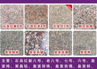 立泉主營(yíng)產(chǎn)品:石島紅,石島紅(7號(hào)),石島紅8號(hào),石島紅(老8號(hào)),石島紅(新8號(hào)),新石島紅,新石島紅(荔枝面),新石島紅(光面),皇室冰花,皇室啡1,皇室啡(新礦),皇室啡珠,皇室啡鉆,皇室啡珠2,皇室啡珠1,皇室灰企業(yè)地址:山東威海榮成市