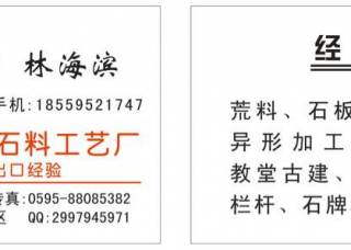 晉江市永和發(fā)德石料工藝廠主營產(chǎn)品:芝麻白G603,芝麻黑654,漳浦青G612,G602,楓葉紅,G654,銹石,芝麻白G623,G633,G681蝦紅(光面),G664(荔枝面),G664(火燒面),羅源紅G664,G655(火燒面),G640,攀西蘭,意大利黑白根1,黑白根,內(nèi)蒙古新卡麥,新卡麥(內(nèi)蒙)企業(yè)地址:福建晉江永和鎮(zhèn)巴厝村發(fā)德石料工藝廠